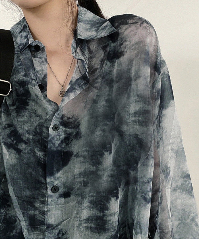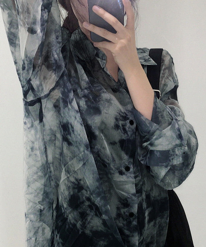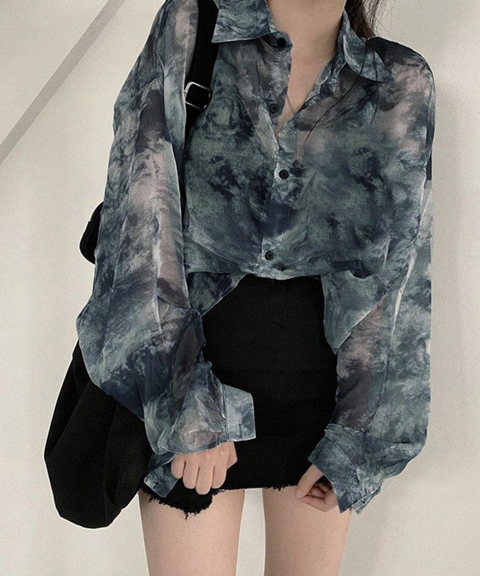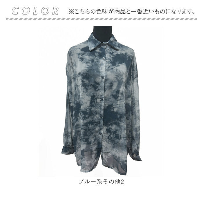 シアーシャツ 長袖 通販 シアーブラウス シアー ブラウス 長袖シャツ レディース トップス シースルーシャツ シャツ タイダイ柄 薄手 透け感 羽織り 春夏秋 冷房対策 カジュアル オシャレ