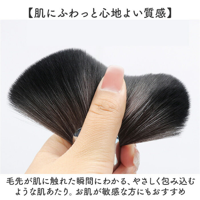 ・扇状に広がる形状が頬やアゴ周りにぴたりと沿う設計。自然に陰影をつけられる安心感。
