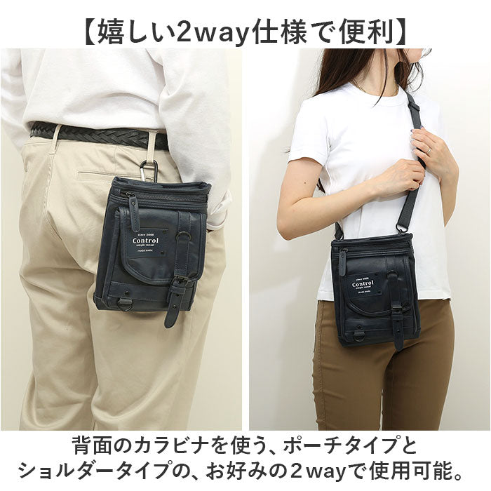 ・背面のカラビナを使う、ポーチタイプとショルダータイプの、お好みの2wayで使用可能。