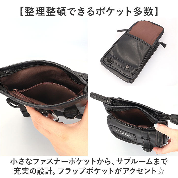 ・小さなファスナーポケットから、サブルームまで充実の設計。フラップポケットがアクセント☆