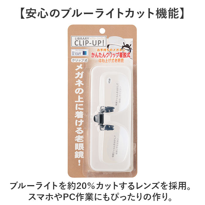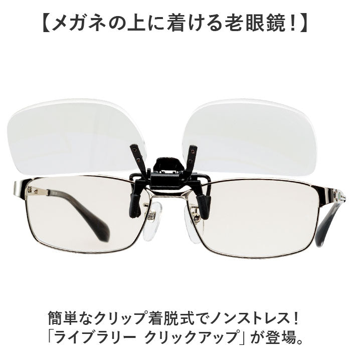 シニアグラス 通販 老眼鏡 ライブラリー クリックアップ 跳ね上げ式老眼鏡 着脱式老眼鏡 ブルーライトカット 着脱式 掛け外し不要 男女兼用 リーディンググラス 眼鏡 めがね メガネ