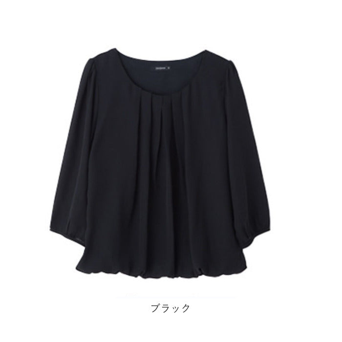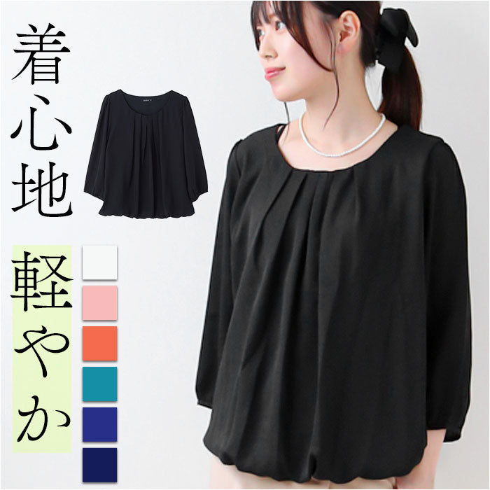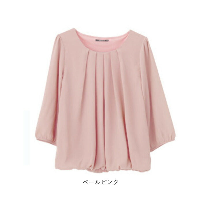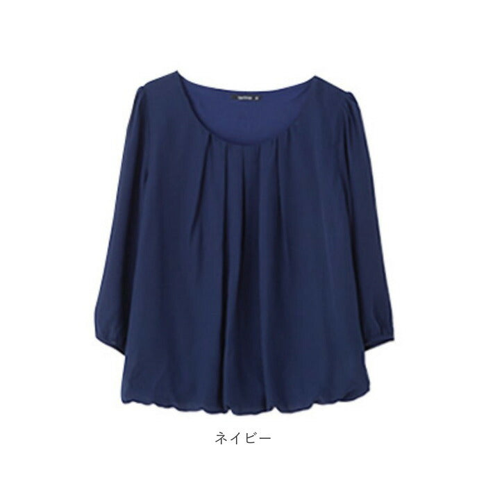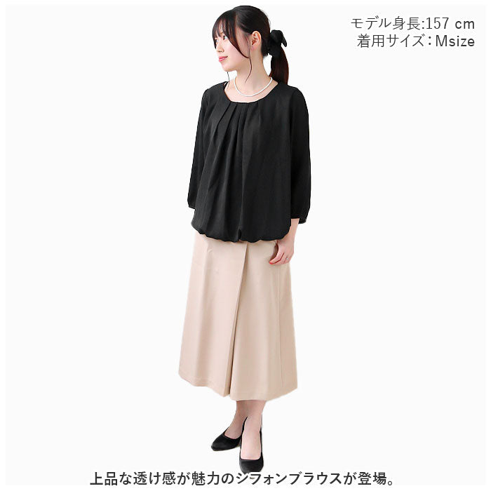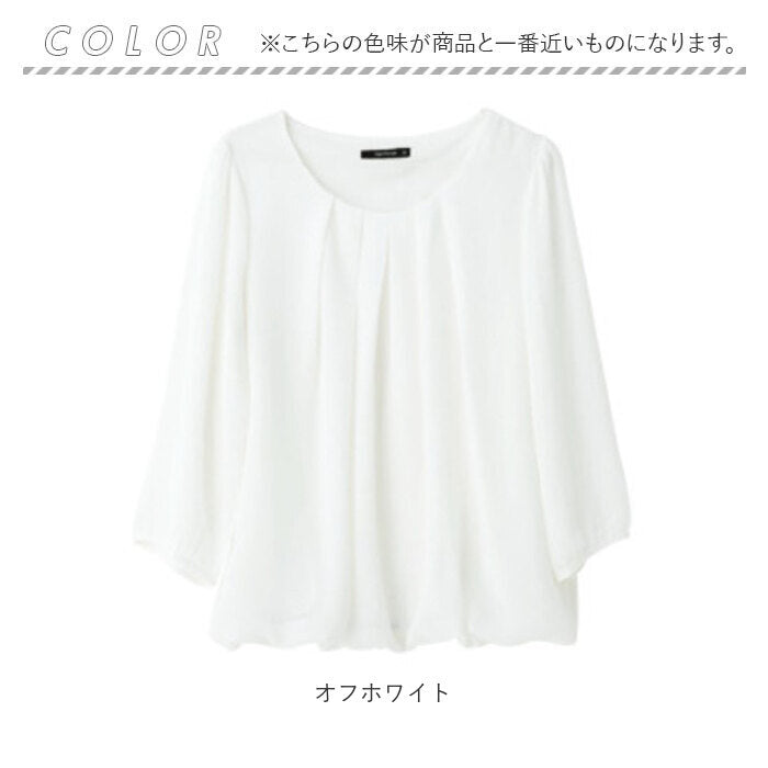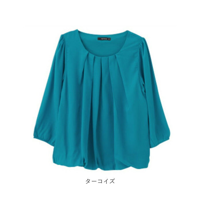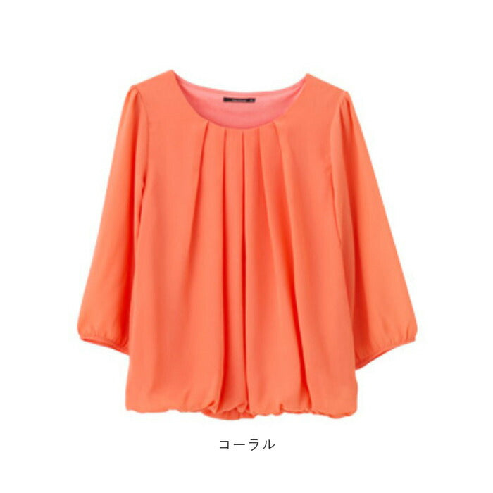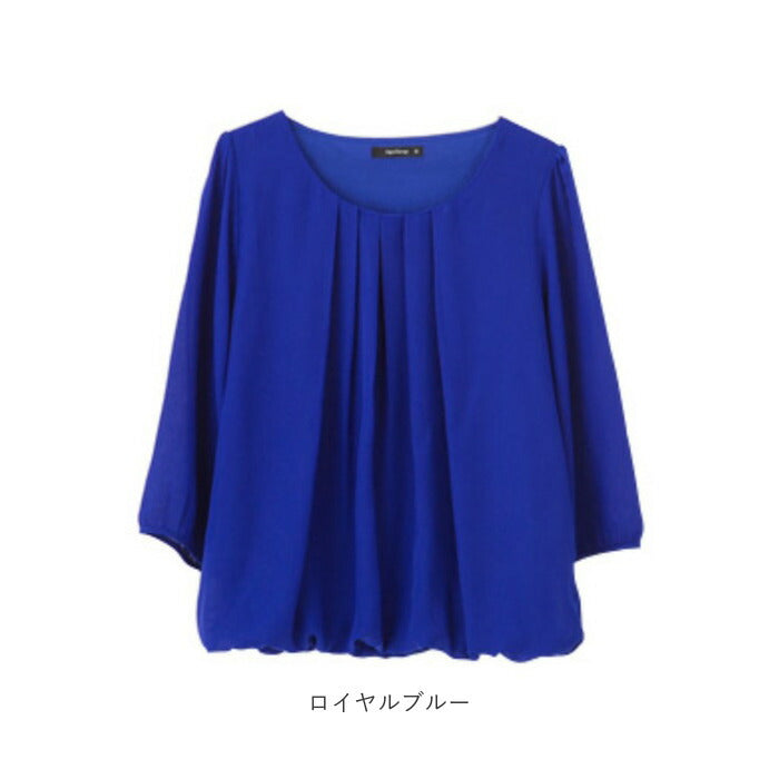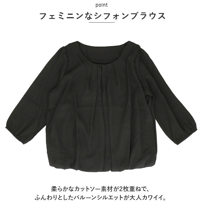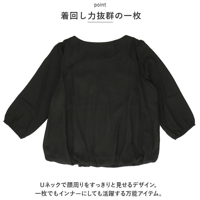 シフォンブラウス ブラウス レディース おしゃれ Uネック 通販 七分袖 7分袖 バルーンブラウス 薄手 柔らかい やわらかい シフォン フォーマル バルーン クルーネック パフスリーブ