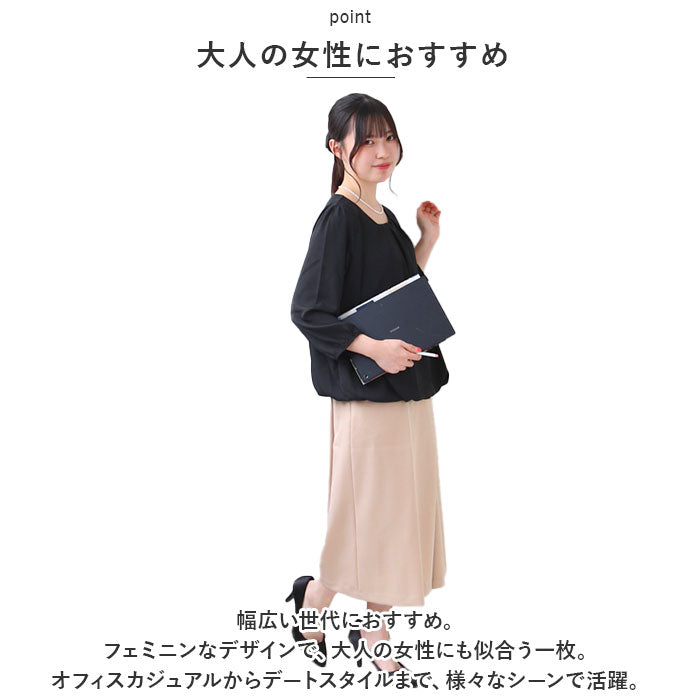 ・幅広い世代におすすめ。フェミニンなデザインで、大人の女性にも似合う一枚。オフィスカジュアルからデートスタイルまで、様々なシーンで活躍。