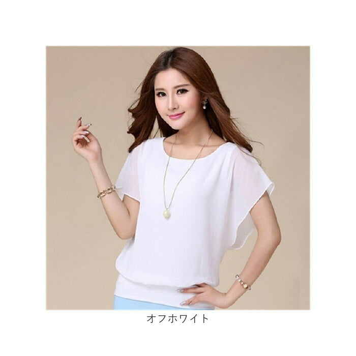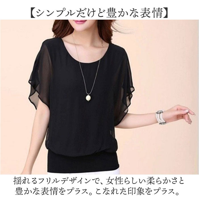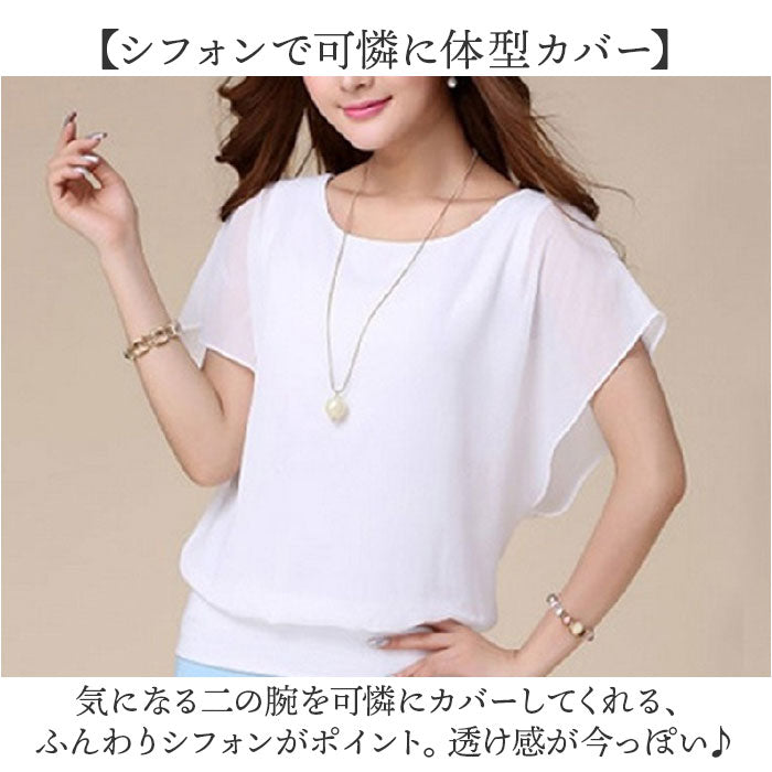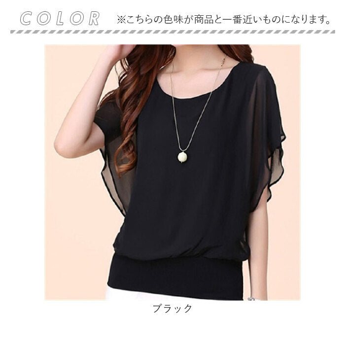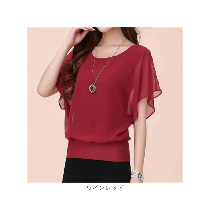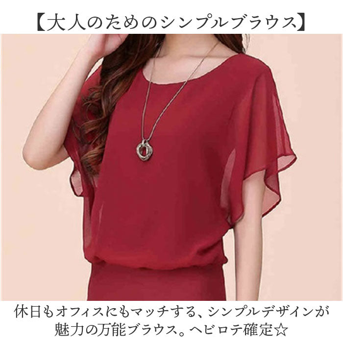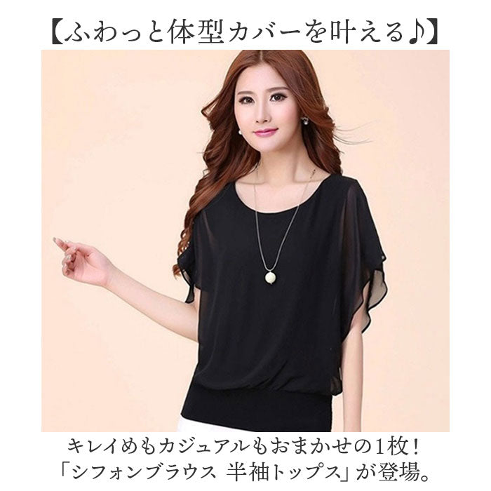 ・キレイめもカジュアルもおまかせの1枚!「シフォンブラウス 半袖トップス」が登場。