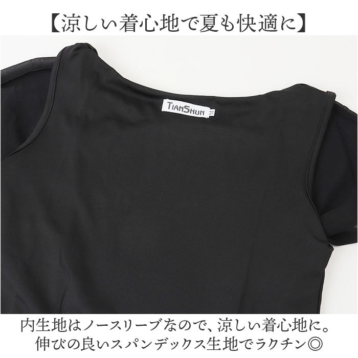 ・内生地はノースリーブなので、涼しい着心地に。伸びの良いスパンデックス生地でラクチン◎