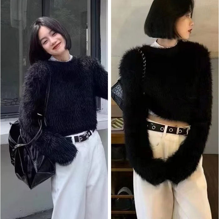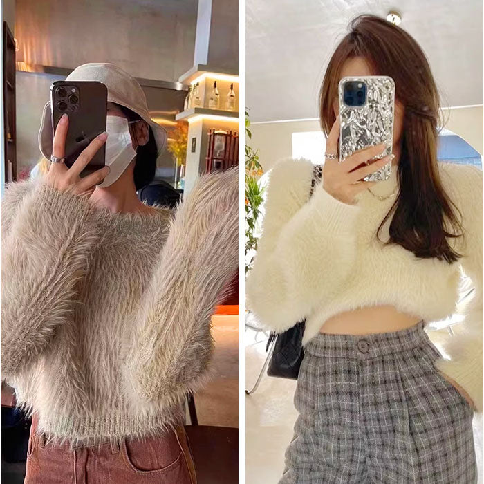 ・絶妙なショート丈でこなれ感アップ♪シャギーニットトップス。
