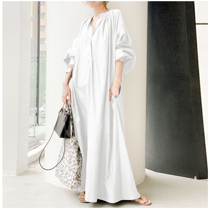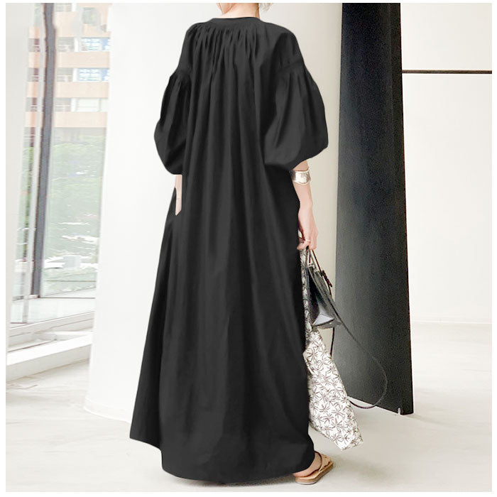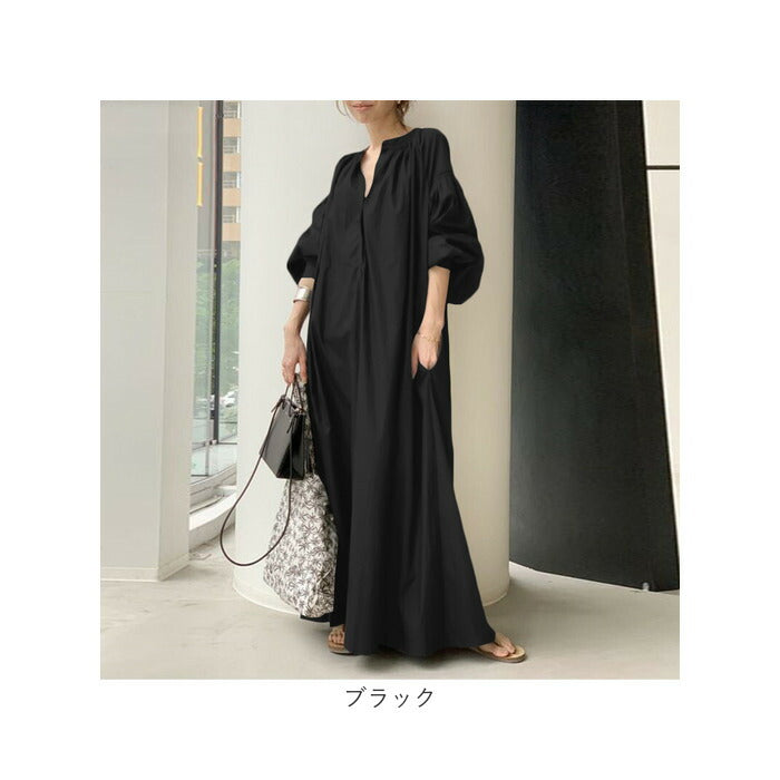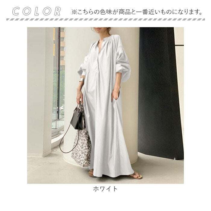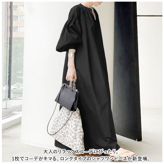 シャツワンピース ロング 通販 ワンピース ロングワンピース マキシ丈ワンピース ロングスカート 五分袖 マキシ コットン ポケット ゆったり 体型カバー 綿 レディース 無地 カジュアル