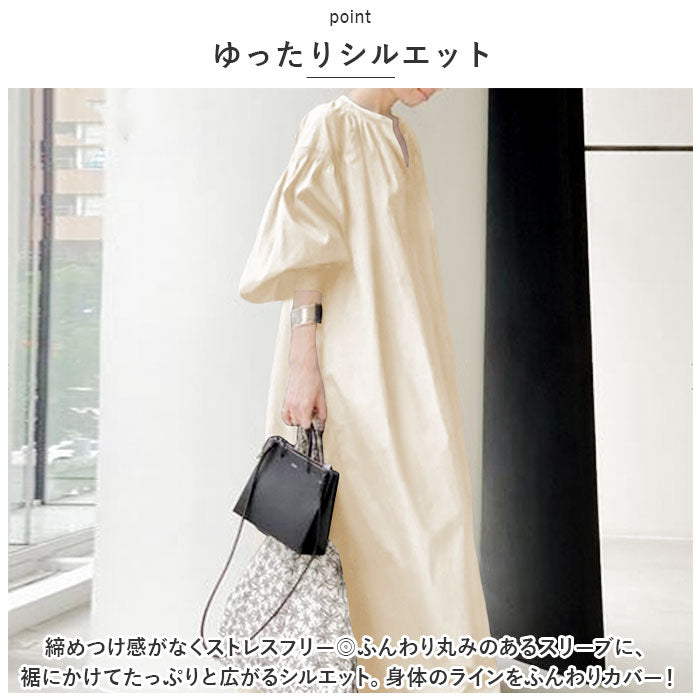 ・締めつけ感がなくストレスフリー◎ふんわり丸みのあるスリーブに、裾にかけてたっぷりと広がるシルエット。身体のラインをふんわりカバー!