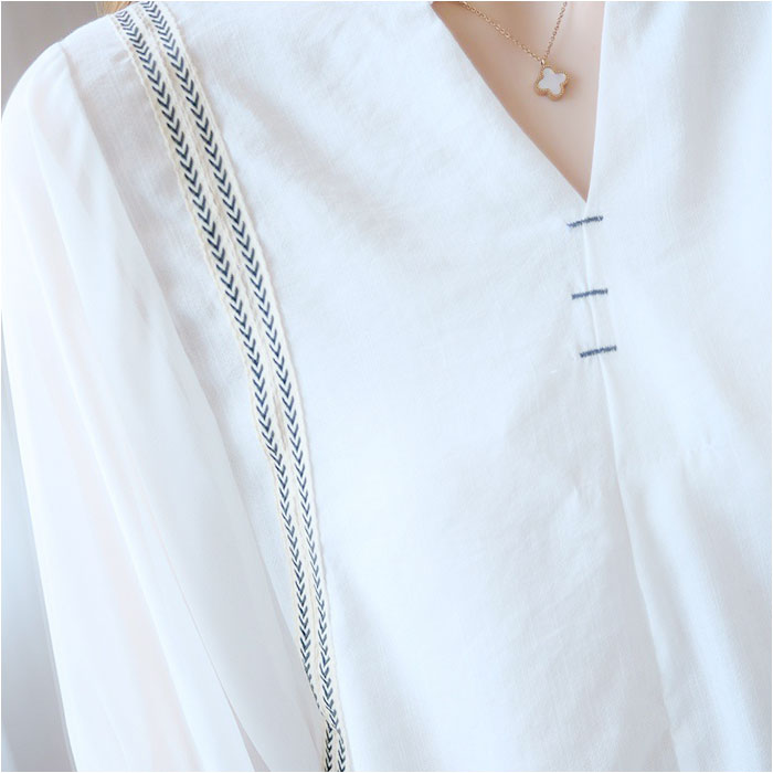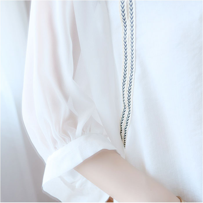 ・チロリアンテープで、パッと華やかに!シャツだけど、カジュアルダウンしやすいのがGOOD。