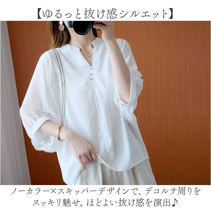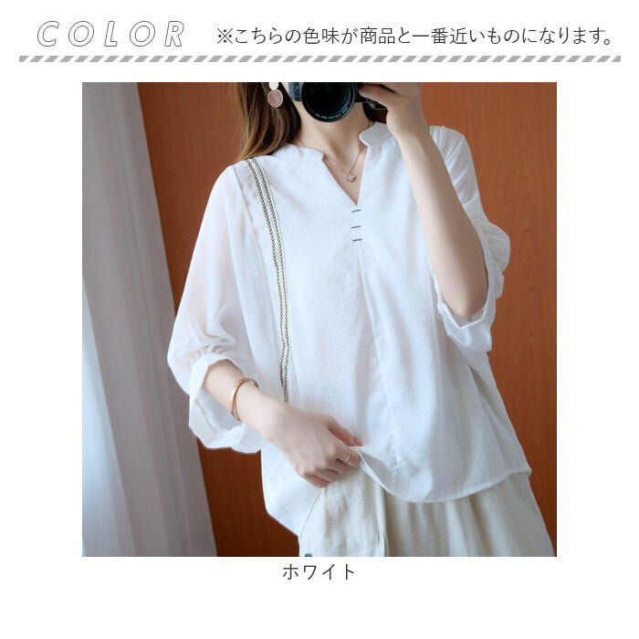 シャツ ブラウス レディース 七分袖 通販 シャツブラウス tシャツ Tシャツ チュニック 無地シャツ 7分袖 スキッパー vネック Vネック ドルマンスリーブ ドルマン 涼しい きれいめ
