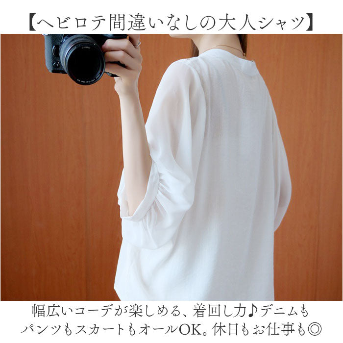 ・シンプルに見えて、今っぽさが満点!「シャツ ブラウス 7分袖」が登場。