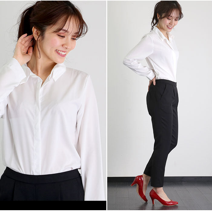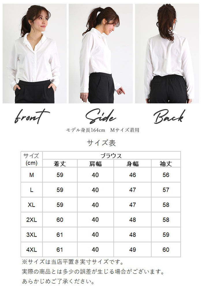 シャツ ブラウス 長袖 通販 レディース 長袖 ポリエステル100% しわになりにくい 白 ホワイト オフィス 通勤 ビジネス フォーマル 就活 リクルート スーツ ゆったり 大きいサイズ M L XL 2XL 3XL 4XL トップス