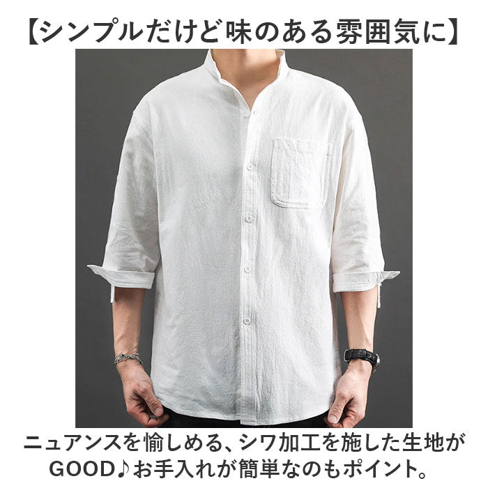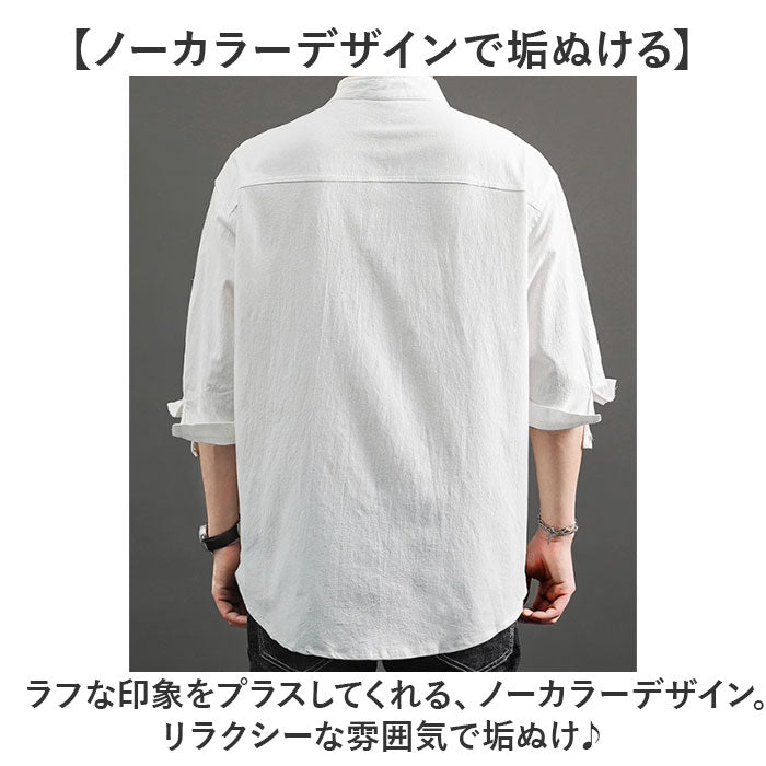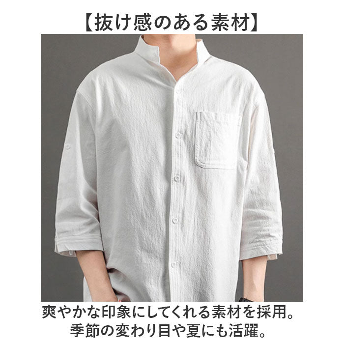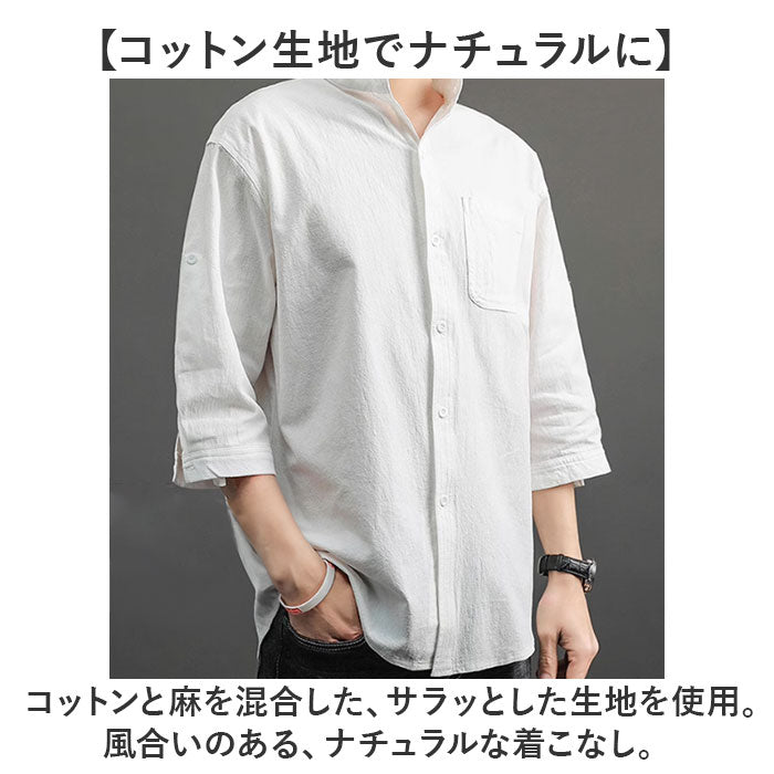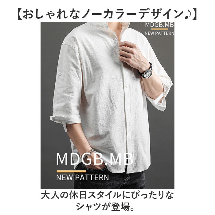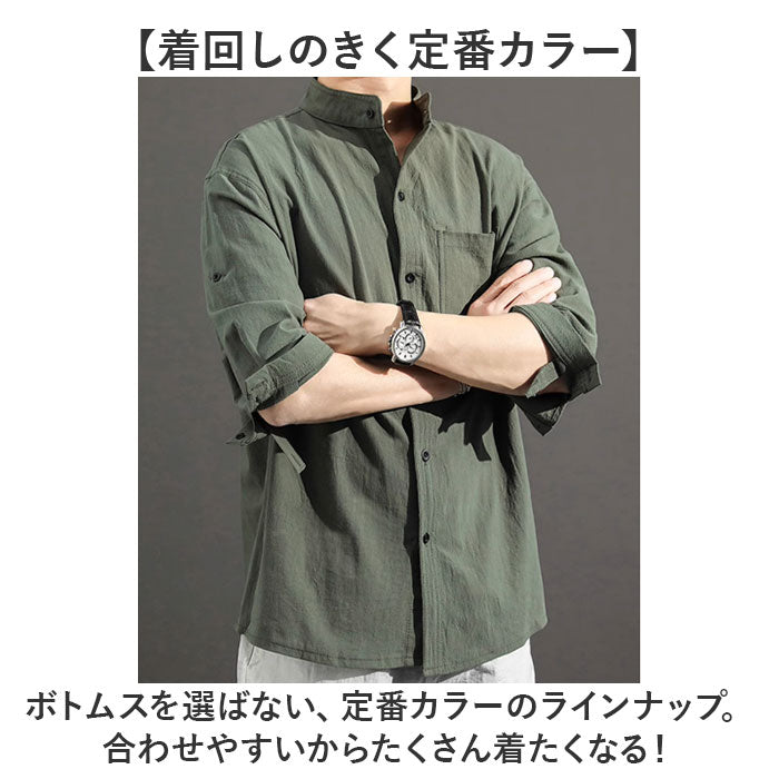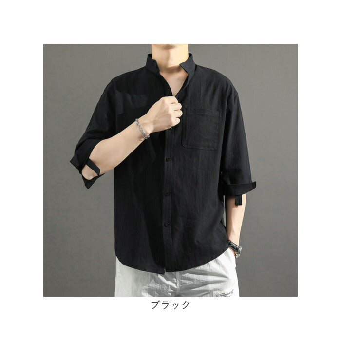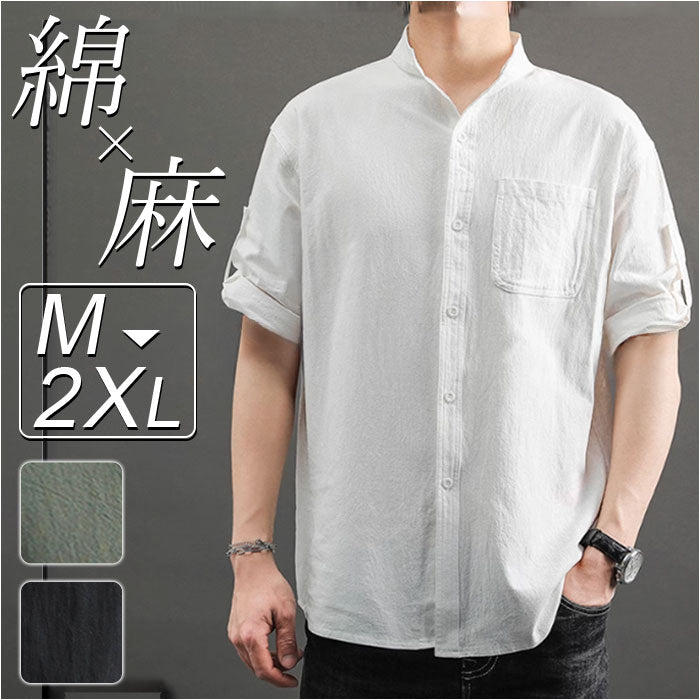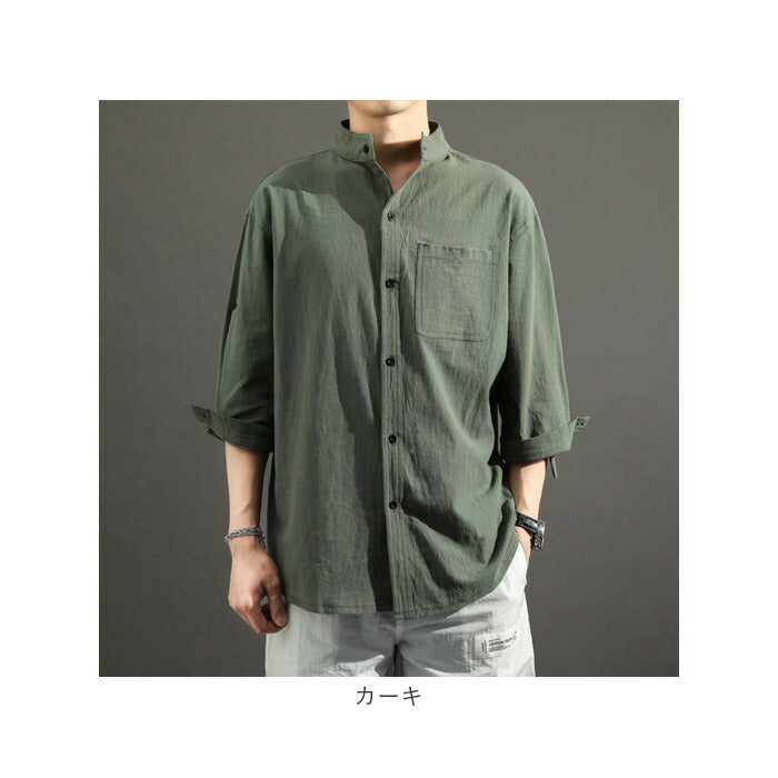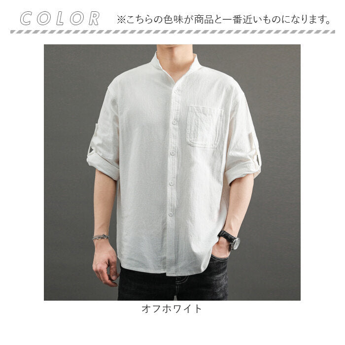 シャツ メンズシャツ 通販 カジュアルシャツ シャツ シンプル バンドカラー 薄手 無地 おしゃれ カジュアル 春 夏 秋 トップス オシャレ コットンリネン