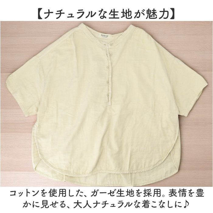 シャツ レディース 半袖 通販 半袖シャツ ガーゼシャツ ゆったり ドロップショルダー おしゃれ シンプル 無地 女性 大人 かわいい オシャレ 大人かわいい 大人可愛い カジュアル