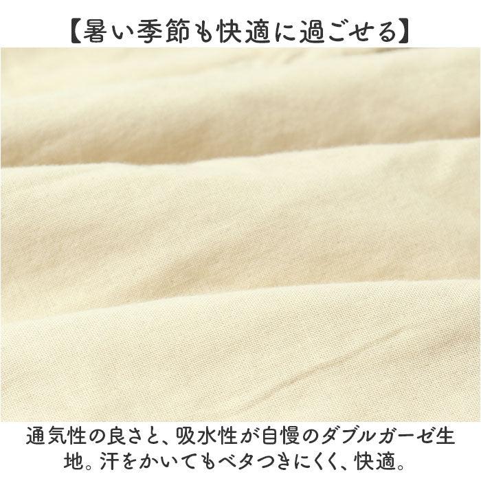 ・通気性の良さと、吸水性が自慢のダブルガーゼ生地。汗をかいてもベタつきにくく、快適。