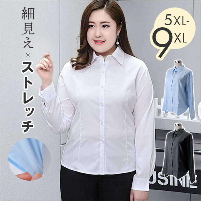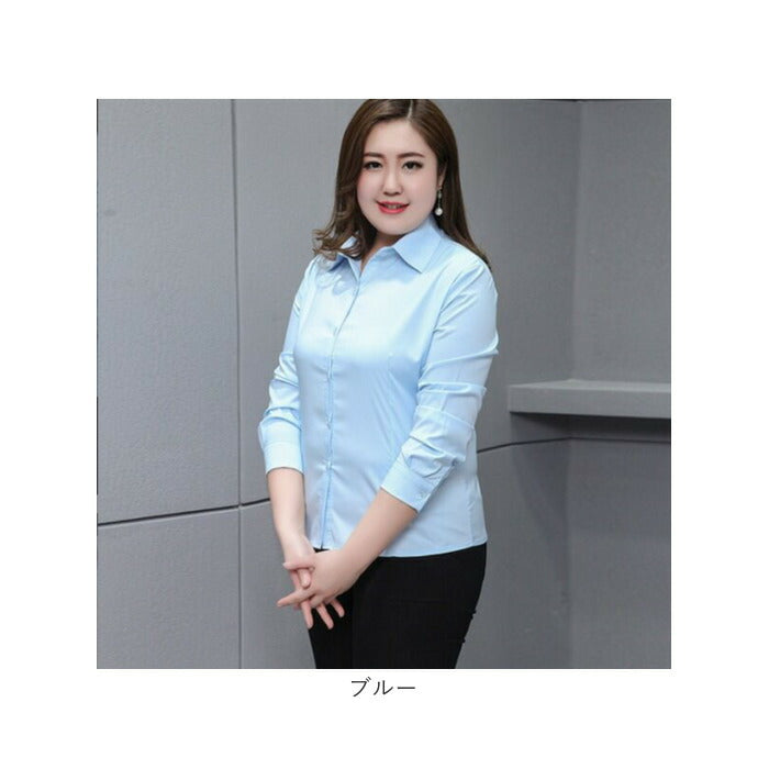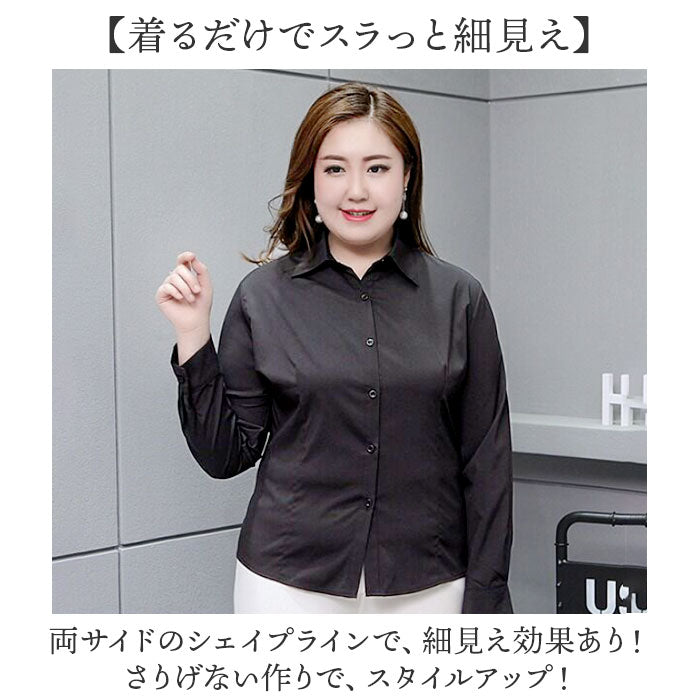 シャツ レディース 大きいサイズ 通販 長袖 長袖シャツ ブラウス ゆったり ぽっちゃり ビジネス オフィス 通勤 ワイシャツ リクルート 仕事 襟付き きれいめ 上品 無地 トップス