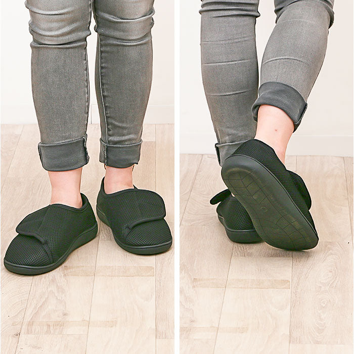 ・大きな面ファスナーでフィット感を調整できて脱ぎ履きも楽々◎