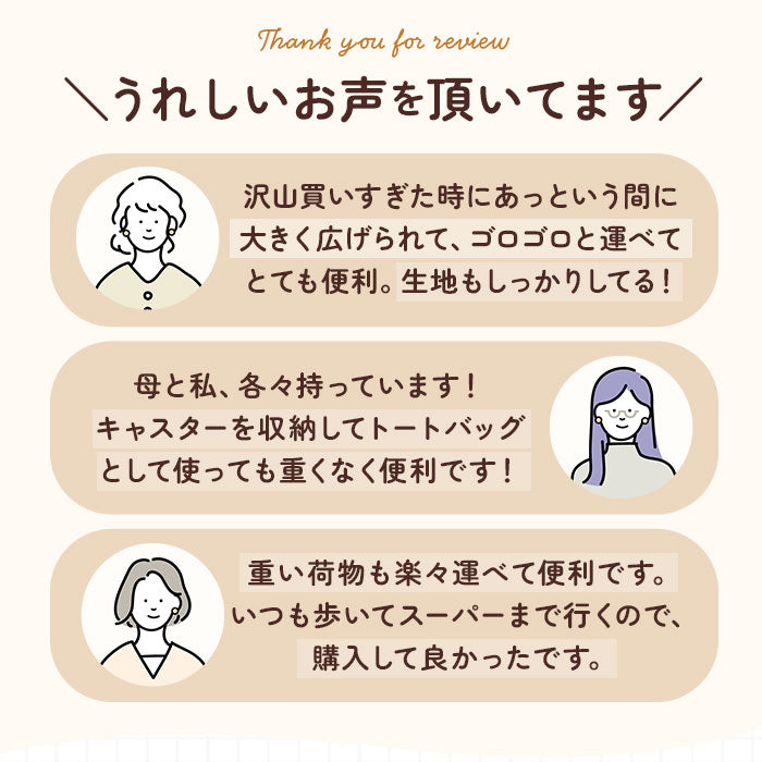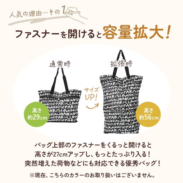 ・バッグ上部の360度ファスナーを開放することで、容量がUP!お買い物用のキャリーバッグとしてはもちろん、旅行の荷物の持ち運びにも大活躍。