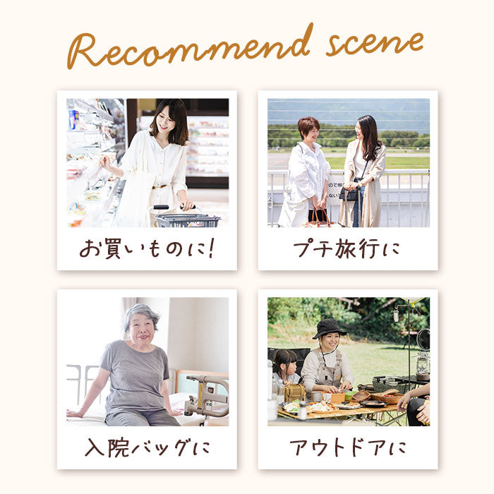 ・バッグの生地には滑らかな手触りのポリエステル生地を使用。汚れもサッと拭き取れて、お手入れもラクチン。