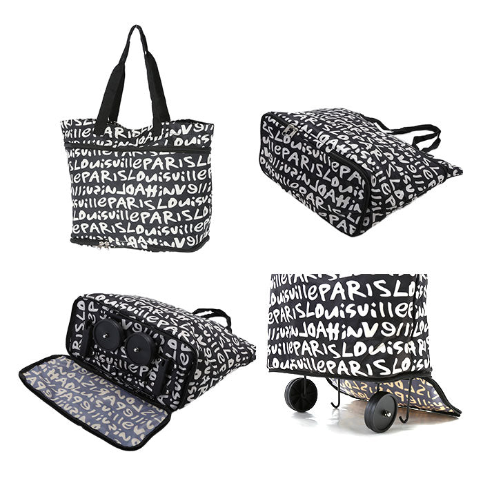 ・お出掛けする時は便利なトート。帰りにはラクラクキャリーに変身!持ち運びに便利なコンパクトショッピングキャリー。
