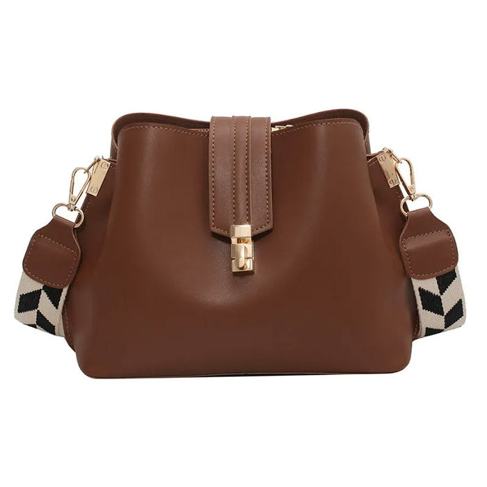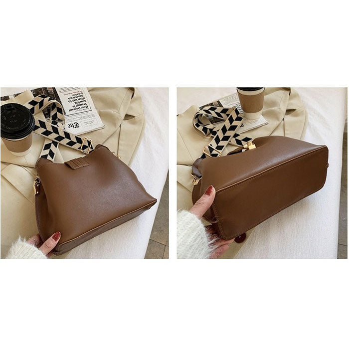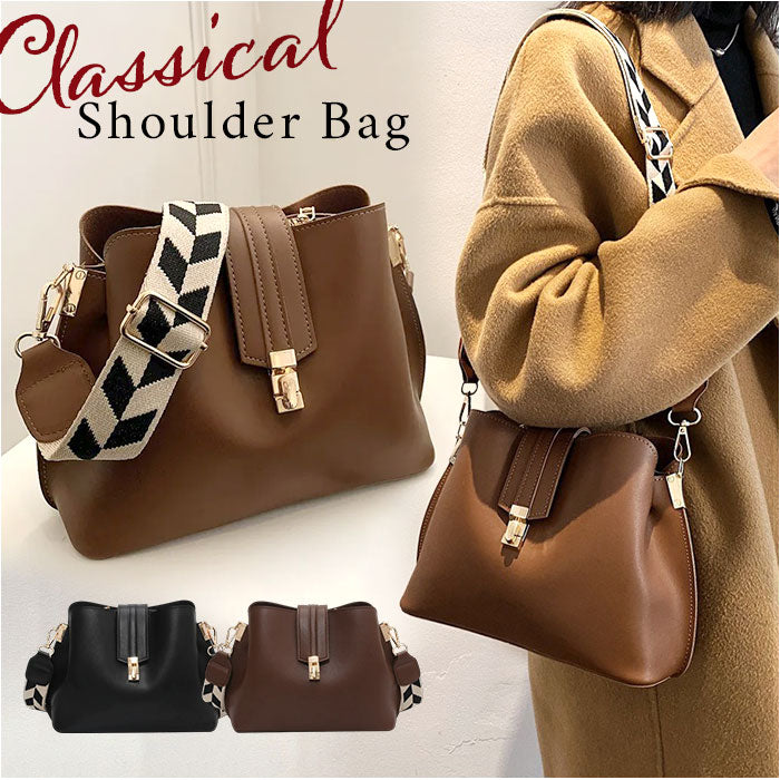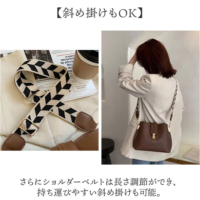 ・クラシックなレザー風の質感とトレンド感のある柄のショルダーベルトが魅力なバッグ。