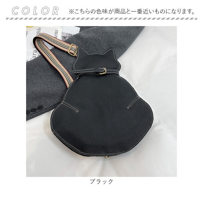 ・ネコちゃんデザインがとってもキュート☆おしゃれなレザー調のショルダーバッグ。
