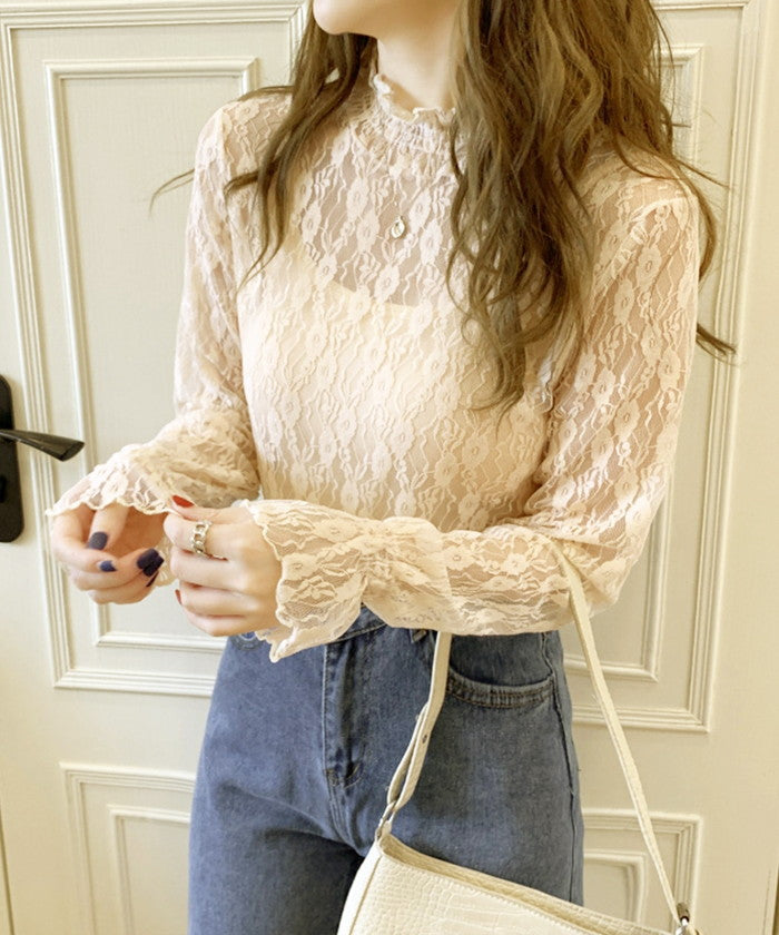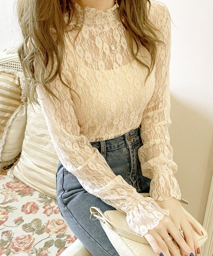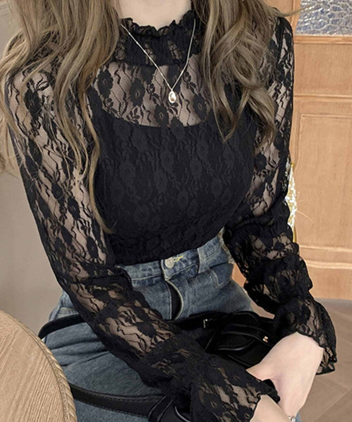 シースルー ブラウス 通販 シースルーブラウス 長袖ブラウス レースブラウスレディース レディース 女性 トップス ハイネックブラウス レーストップス 長袖トップスおしゃれ