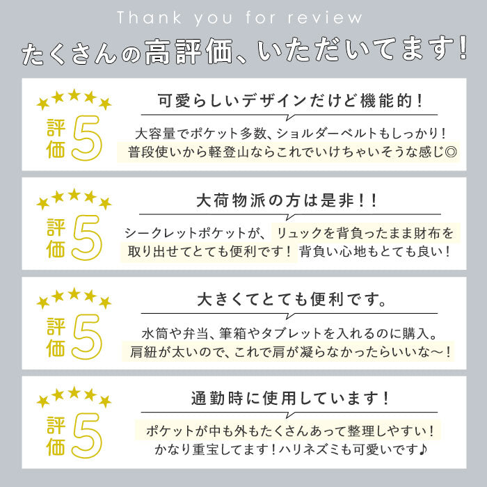 ・表面に1つ、背面ショルダーベルトに2つのDカン、さらに取り外し可能なハリネズミ型のチャーム付き。