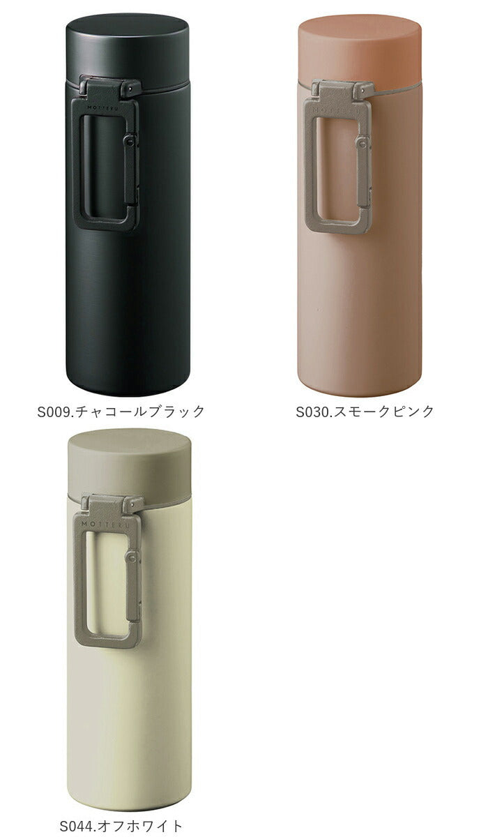 ・MOTTERU(モッテル)から移動中の持ち運びに便利なカラビナフックが付いたサーモボトルが登場!ちょっとしたお出かけにちょうどいい250mlタイプ。