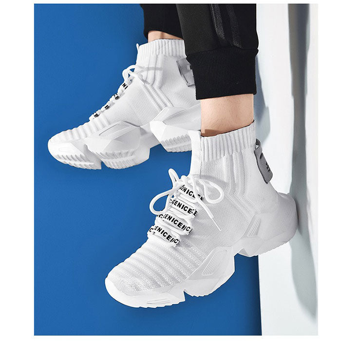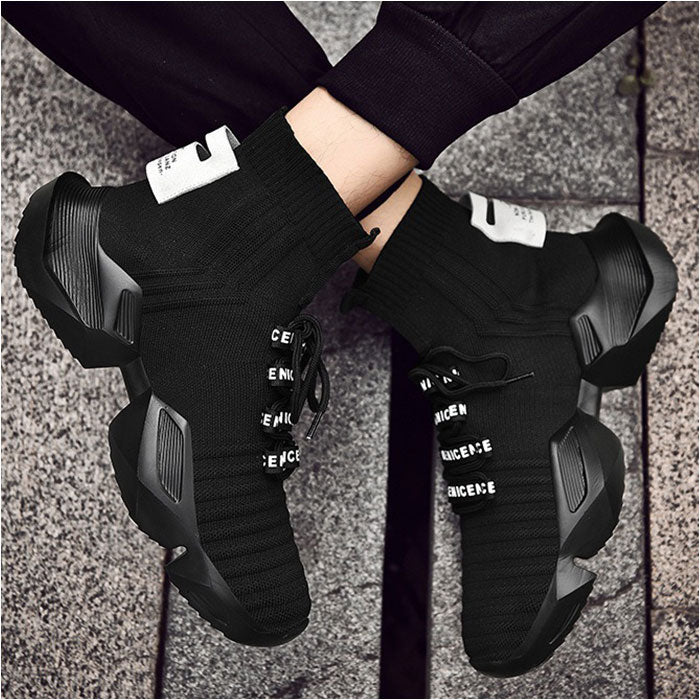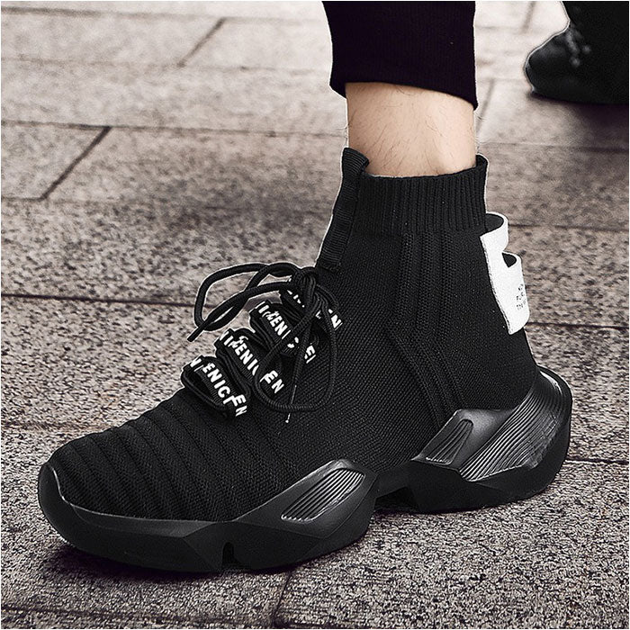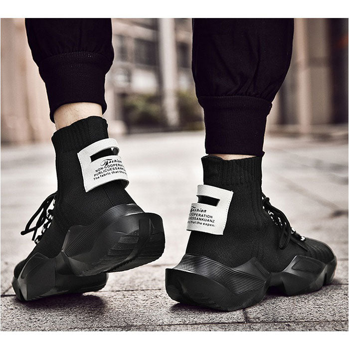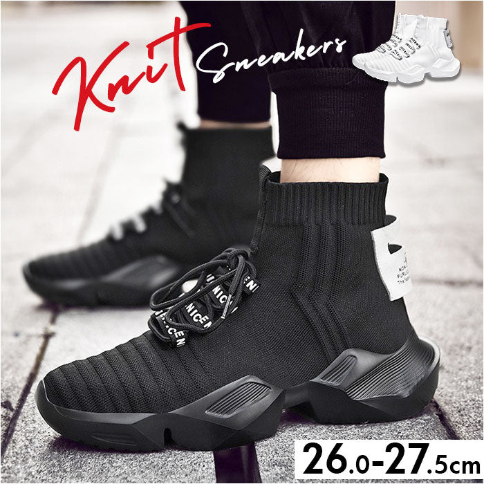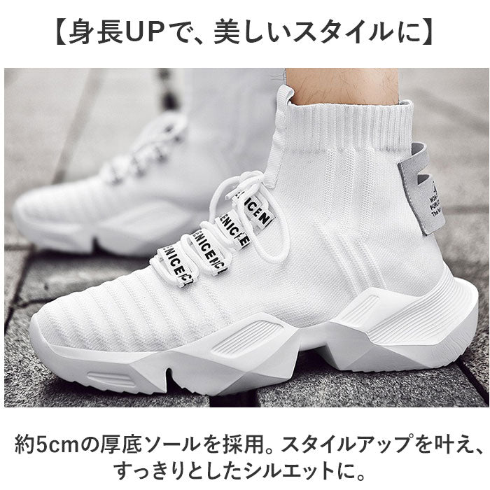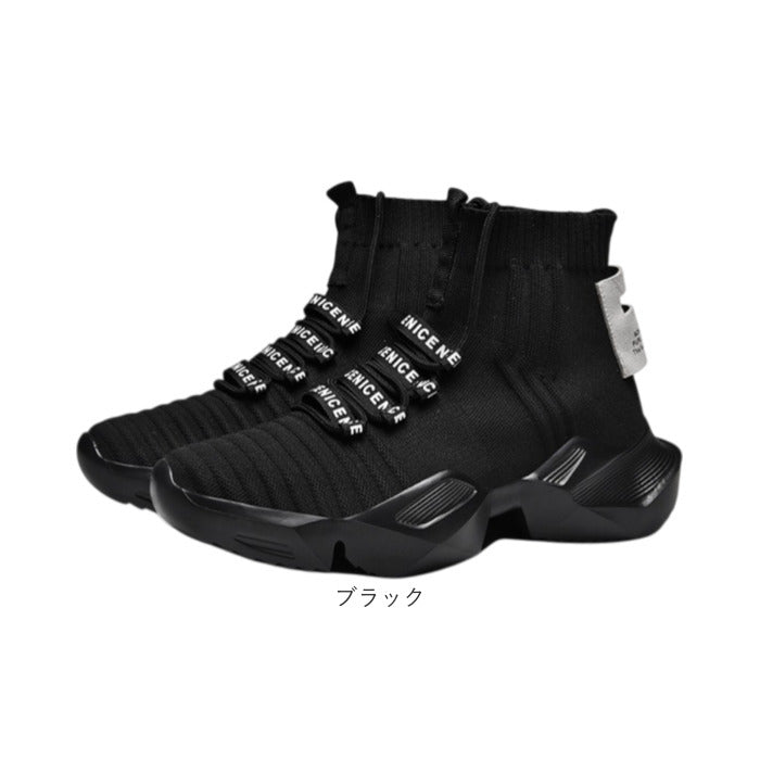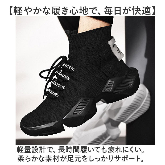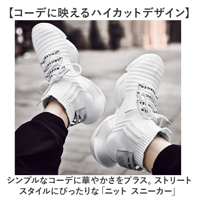 スニーカー ハイカット ニット メンズ 通販 メンズ靴 ニットスニーカー 厚底シューズ ひも靴 紐靴 くつ クツ シューズ 軽量 軽い フィット 厚底 ストリート系 馴染みやすい かっこいい
