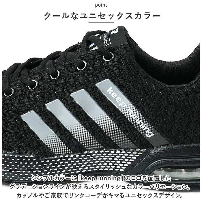 ・シンプルカラーに「keep running」のロゴを配置したグラデーションラインが映えるスタイリッシュなカラーバリエーション。カップルやご家族でリンクコーデがキマるユニセックスデザイン。