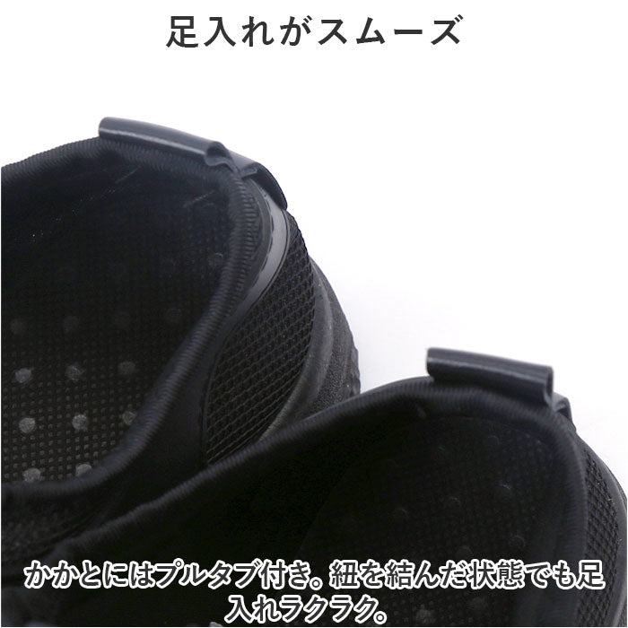 ・かかとにはプルタブ付き。紐を結んだ状態でも足入れラクラク。