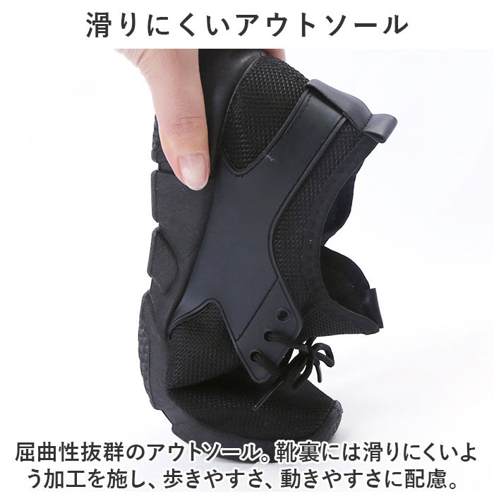 ・屈曲性抜群のアウトソール。靴裏には滑りにくいよう加工を施し、歩きやすさ、動きやすさに配慮。