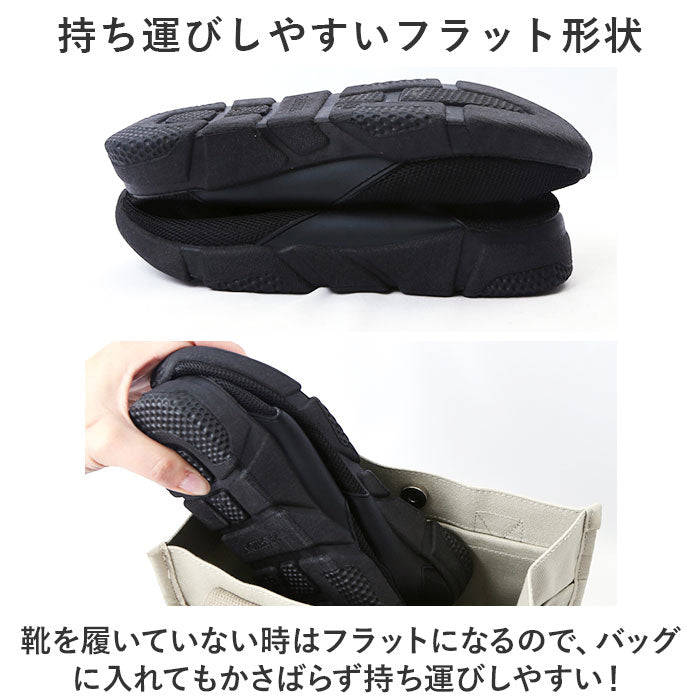 ・靴を履いていない時はフラットになるので、バッグに入れてもかさばらず持ち運びしやすい!
