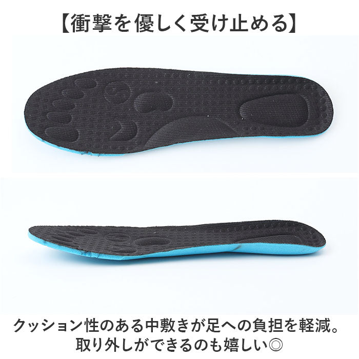 ・クッション性のある中敷きが足への負担を軽減。取り外しができるのも嬉しい◎