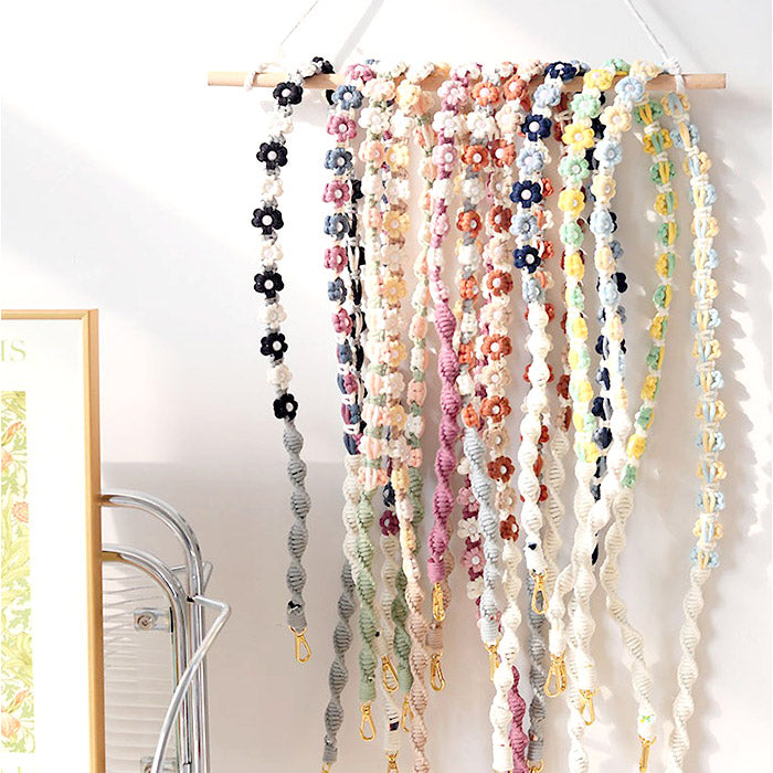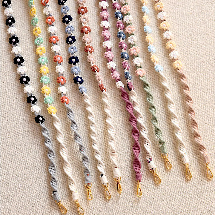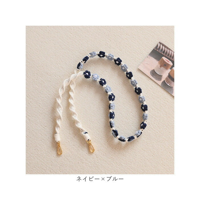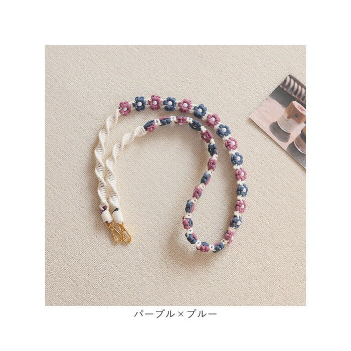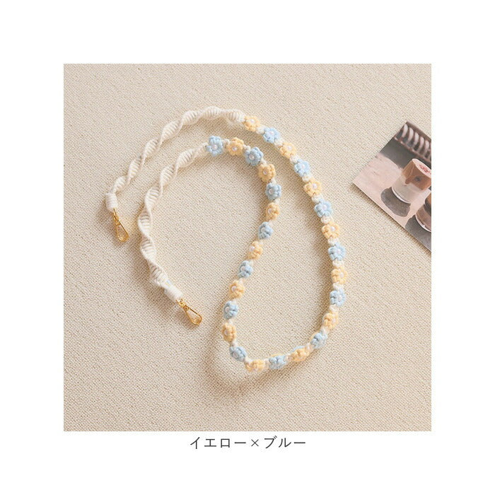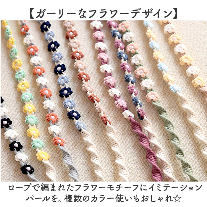 ・ロープで編まれたフラワーモチーフにイミテーションパールを。複数のカラー使いもおしゃれ☆