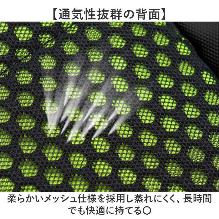 ・柔らかいメッシュ仕様を採用し蒸れにくく、長時間でも快適に持てる〇