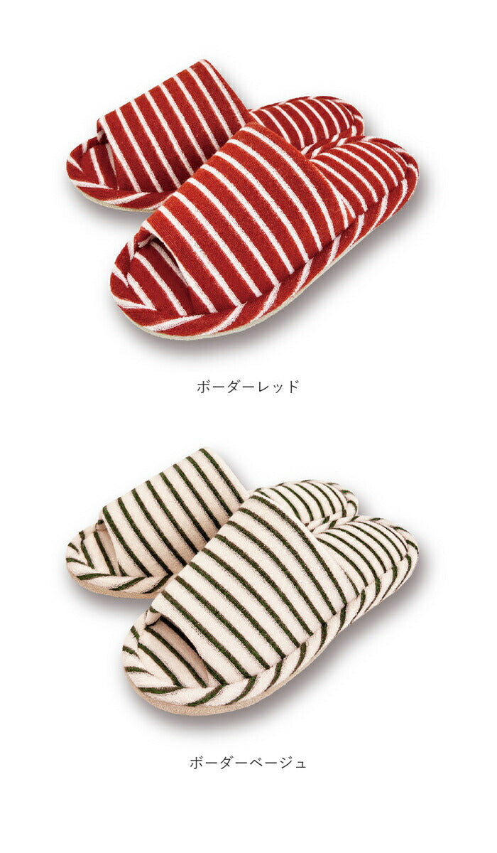 ・スリッパ底面はフローリングの上でも滑りにくく、静音効果のあるポリエステルスエードを採用。