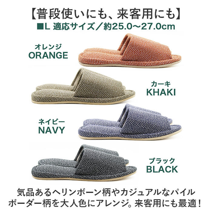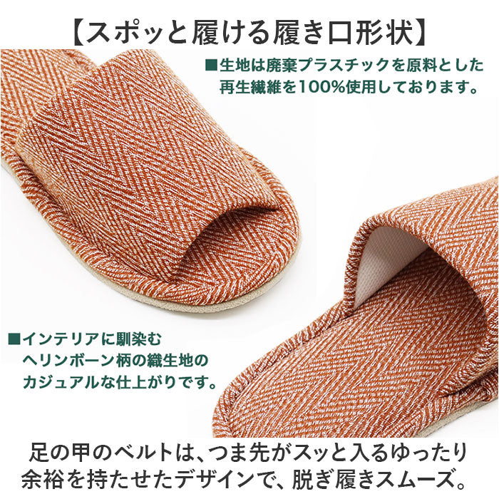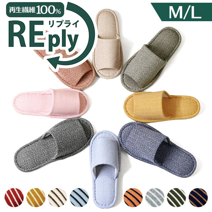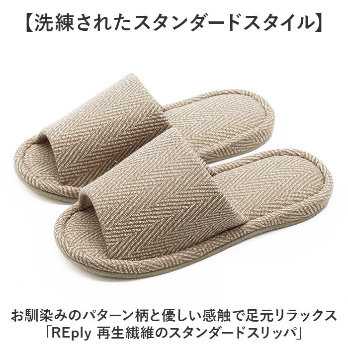 スリッパ 室内 おしゃれ 通販 REply 再生繊維 前あきスリッパ スタンダードスリッパ 前開きスリッパ ルームスリッパ 来客用 室内履き ヘリンボーン柄 洗える トイレ メンズ レディース