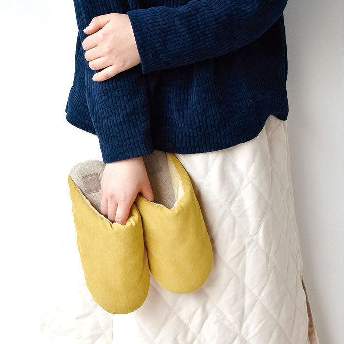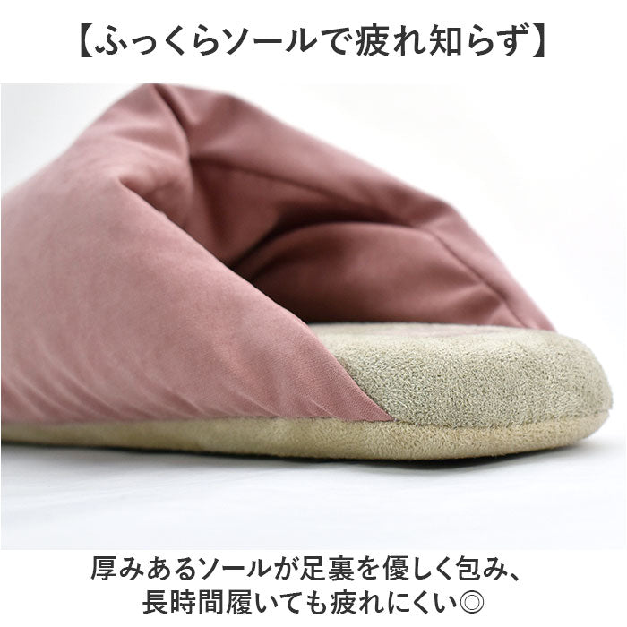 ・底面のスエード素材が足音を吸収し、早朝や夜間でも周りを気にせず過ごせる〇