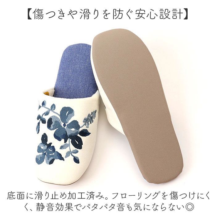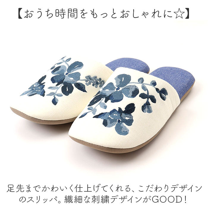 ・足先までかわいく仕上げてくれる、こだわりデザインのスリッパ。繊細な刺繍デザインがGOOD!