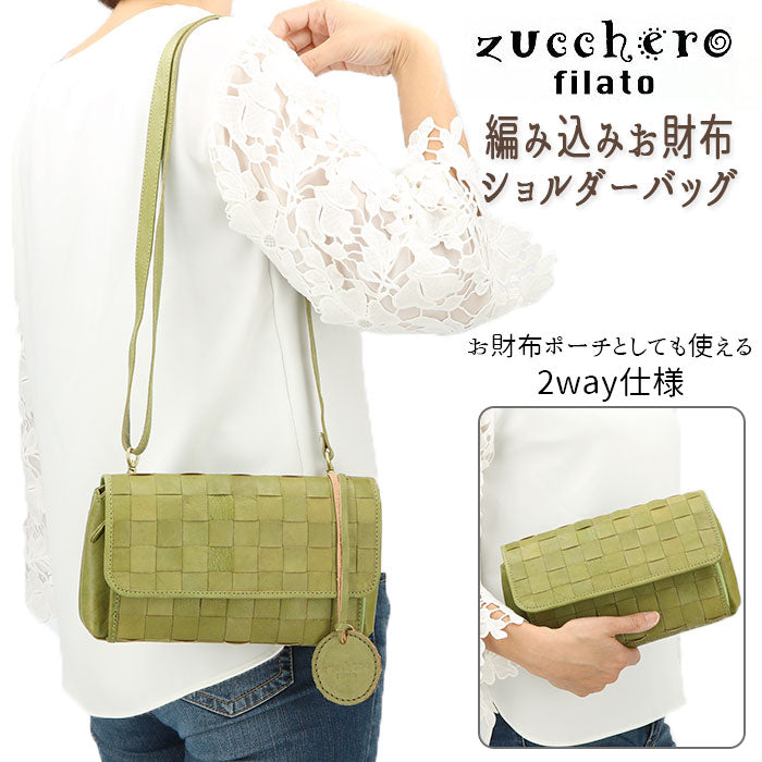zuccherofilato グリーン編み込みお財布ショルダーバッグ