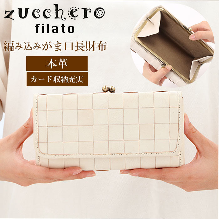 ズッケロフィラート 財布 通販 長財布 レディース がま口 革 レザー 本革 カウレザー 牛革 大容量 編み込み メッシュ 長サイフ おしゃれ かわいい シンプル ナチュラル zucchero filato 48920w ホワイト編み込みがま口長財布 女性用 ウィメンズ レディース財布