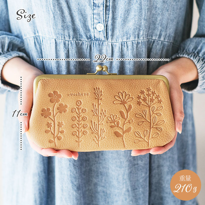 ・サライから、前面に花柄を型押ししたデザインが素敵なガマ口財布が登場。