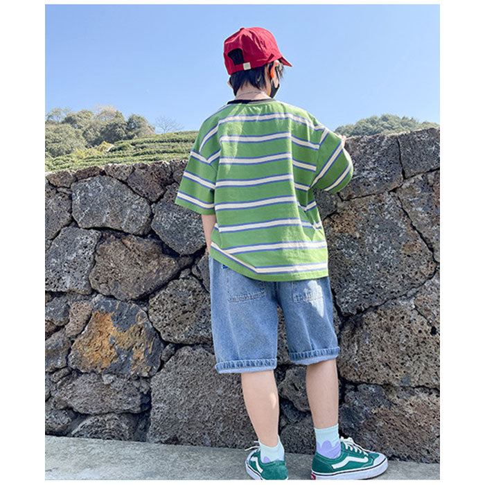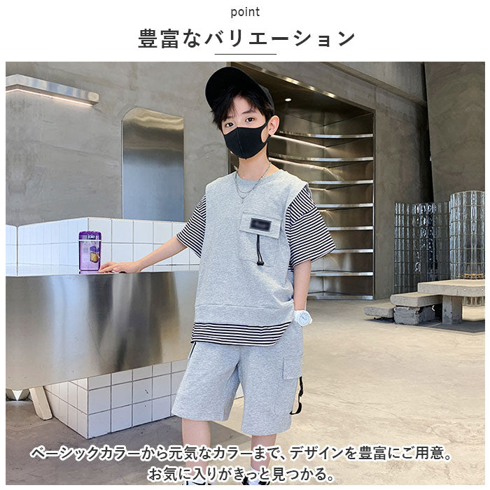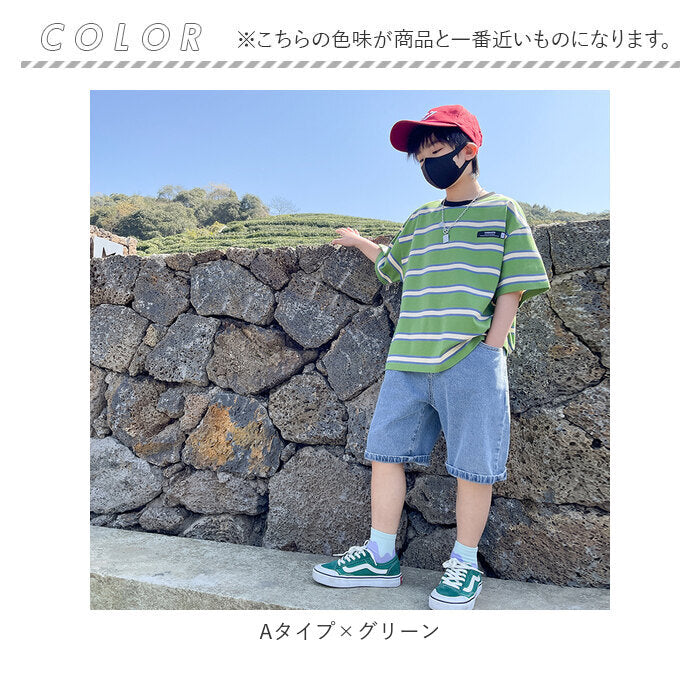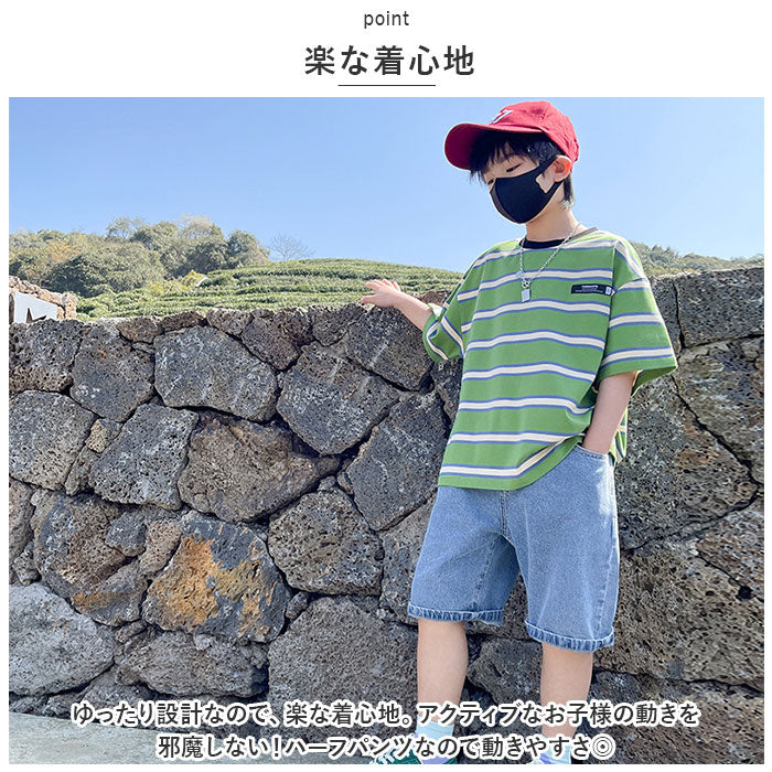 セットアップ キッズ 半袖 通販 上下セット 2点セット パンツセット 子供服 子ども Tシャツ トップス ハーフパンツ 半ズボン パンツ ジュニア 子供 男の子 おとこの子 夏 ストライプ