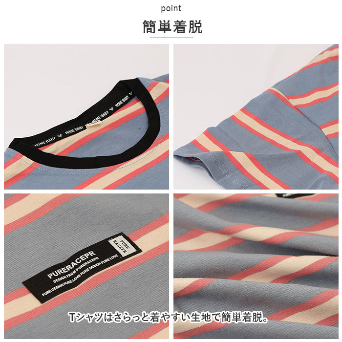 ・ハーフパンツのウエストはゴム仕様。Tシャツはさらっと着やすい生地で簡単着脱。