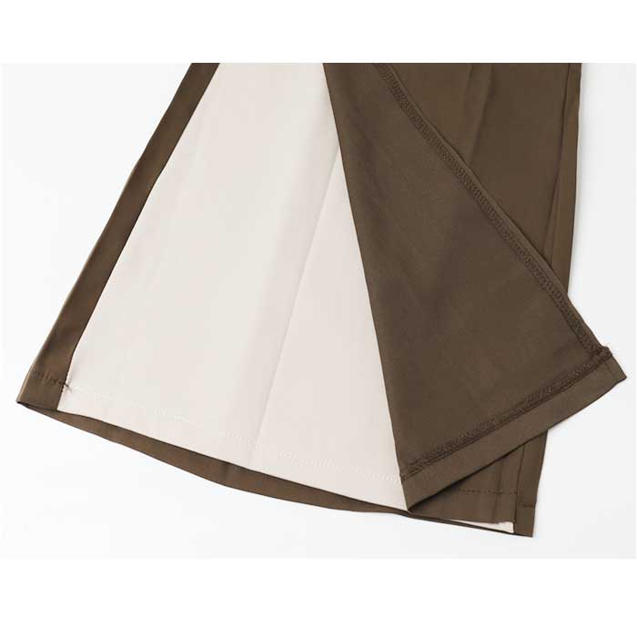 ・大人っぽいシンプルデザインに、パンツのバイカラーでアクセントをプラス。