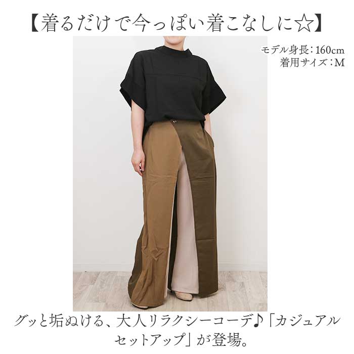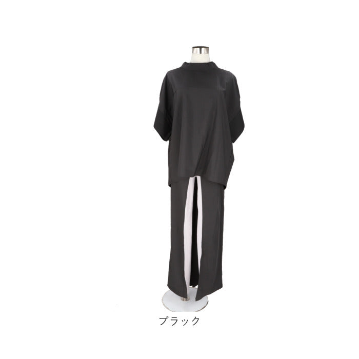 セットアップ レディース カジュアル 通販 ロングパンツ トップス ワイド パンツ 半袖 ロング丈 マキシ丈 上下セット ゆったり 体型カバー 上下 セット きれいめ 上品 シンプル 無地