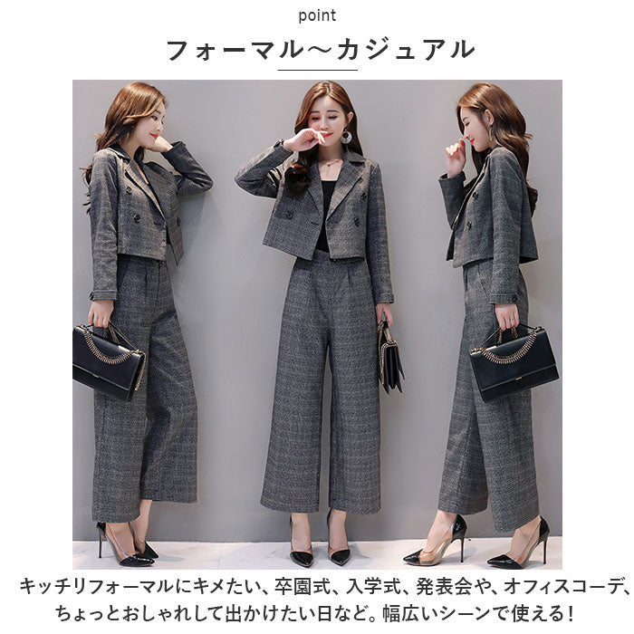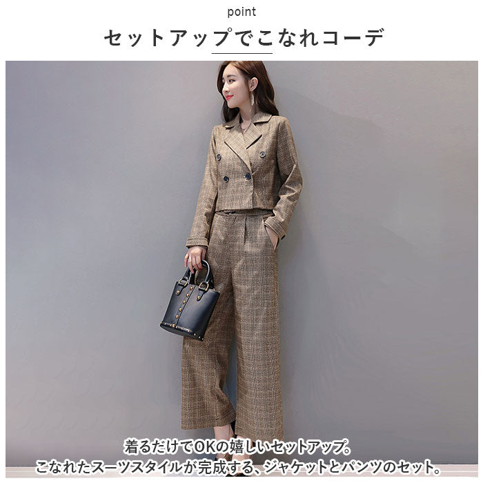 セットアップ レディース 秋冬 通販 パンツスーツ スーツ ワイドパンツ スーツパンツ ズボン ジャケット 上下セット きれいめ カジュアル 春 冬 秋 婦人服 おしゃれ 大人 かわいい 可愛い
