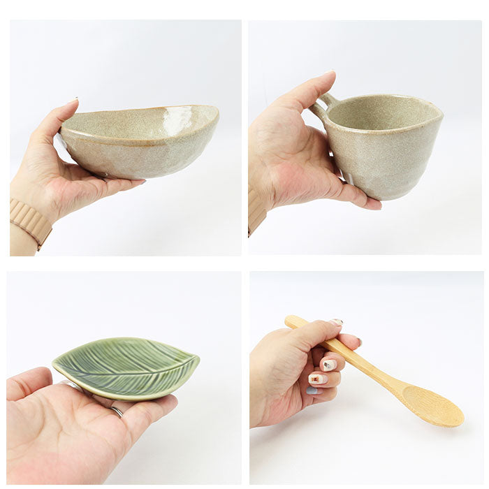 ・丸みのあるフォルムが可愛らしい、カレー皿とカップ。小皿とスプーンのセット。お揃いで使えるので、ギフトにもおすすめ◎